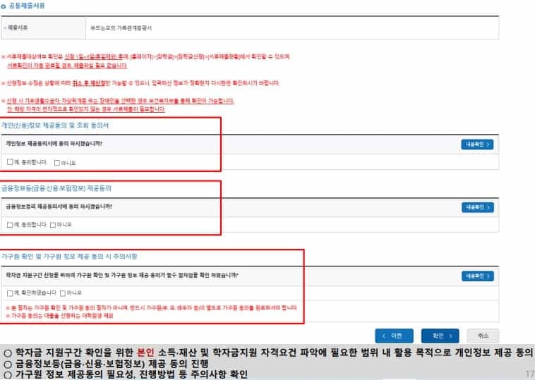| 학자금 지원구산 경곗값 확인 바로가기 | 가구원 정보 제공 동의 바로가기 |