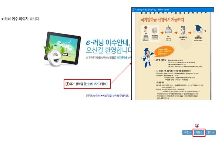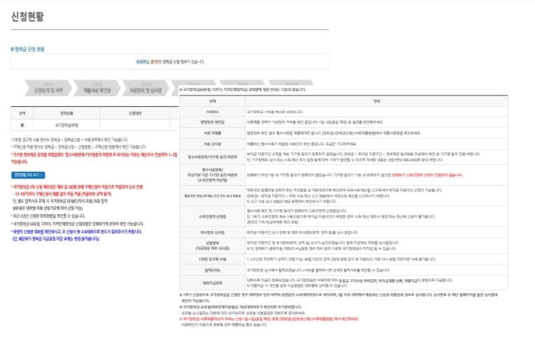 국가장학금 한눈에 보기 : 필수 단계 미확인시 진행 안됩니다.