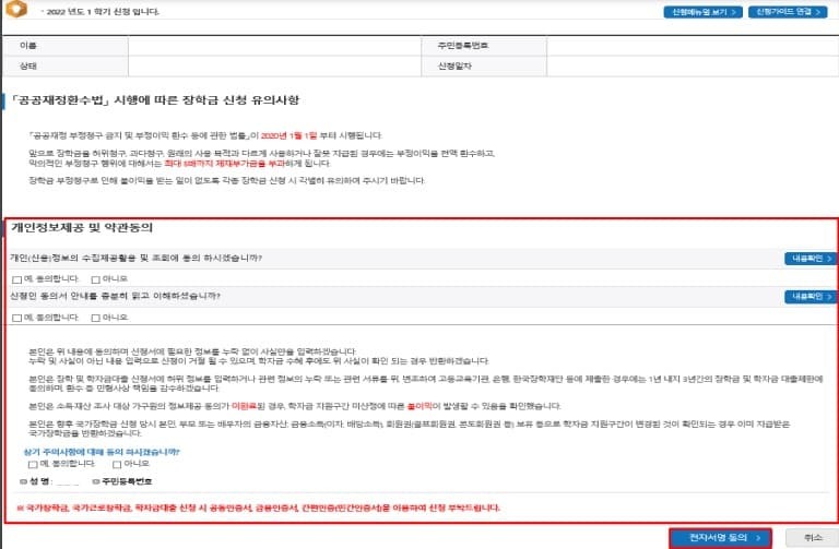 2022 국가장학금 가구원 동의 절차