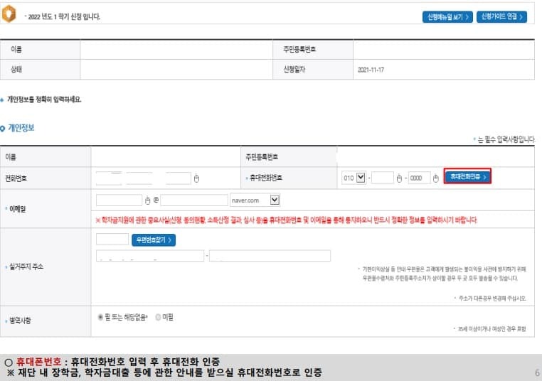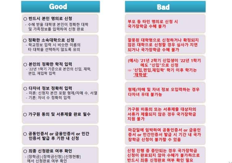 2022 국가 장학금 신청 유의사항