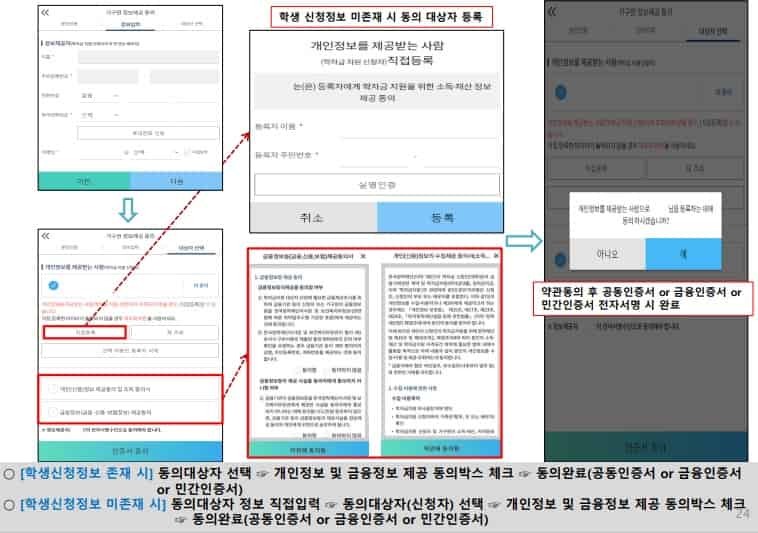 개인정보를 제공하는 사람 대학생의 부모 또는 배우자 공동인증서/ 금융인증서/ 민간인증서 인증