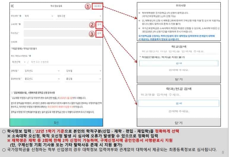 국가장학금 신청하는 학부 신입생의 경우 대학정보 입력여부과 관계없이 대학에서 제공되는 최종 등록정보로 심사 됩니다.