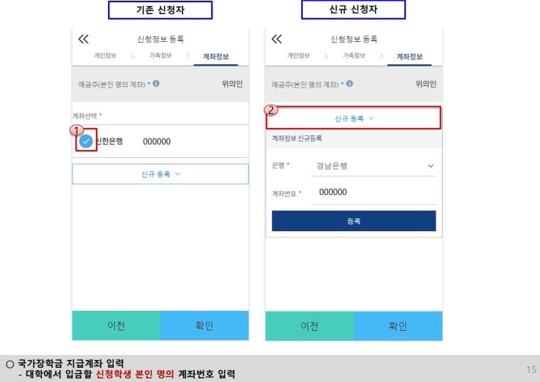 신청시 입력한 가구원 가구원 정보 제공 동의 현황 반드시 확인 및 미동의 시 기한 내 완료해야 국가장학금 수혜 받을 수 있습니다.