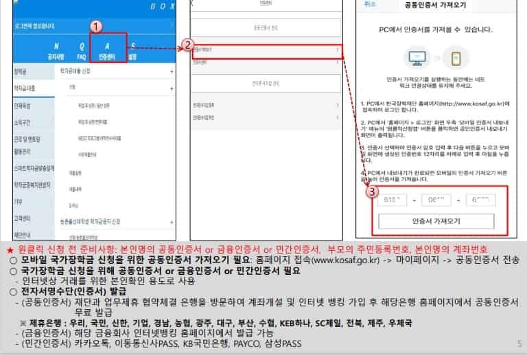 모바일 국가장학금 신청을 위한 공동인증서 가져오기 필요합니다.