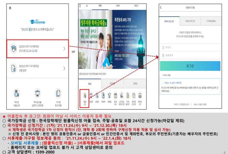 국가장학금 신청 : 한국 장학재단 원클릭 신청 어플 접속, 주말 공휴일 포함 24시간 신청 가능 마감일 제외