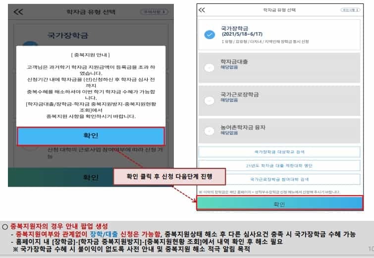 국가장학금 수혜시 불이익 없도록 사전 안내 및 중복지원 해소 적극 알림 목적