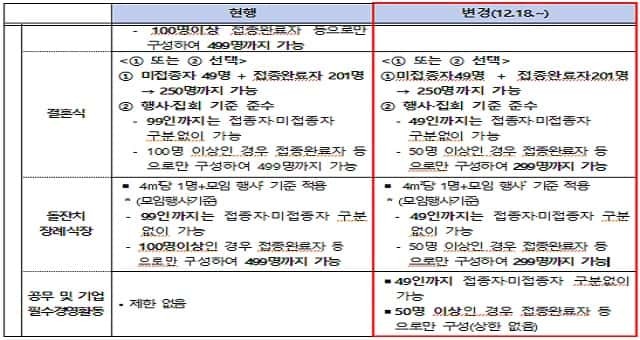 50인 이상은 접종완료자등으로만 구성해 299명까지 가능합니다.