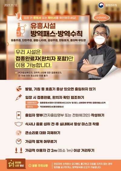 방역패스 접종증명 음성확인 적용을 강화 합니다.