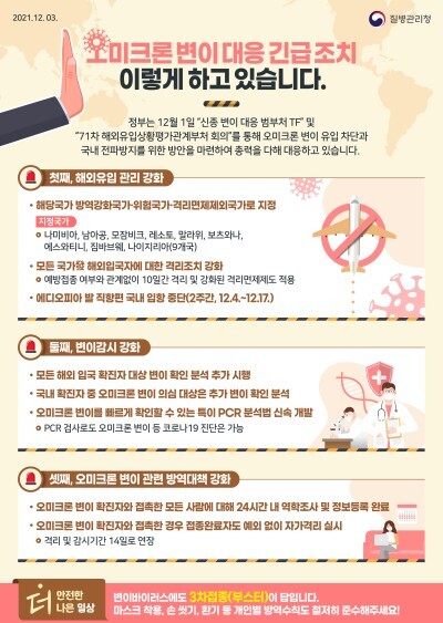 오미크론 변이 대응 긴급 조치 이렇게 하고 있습니다.