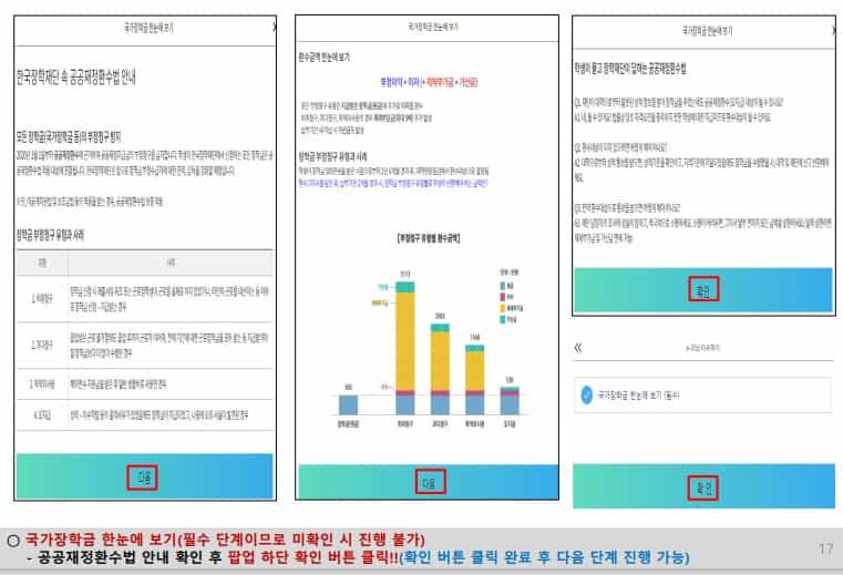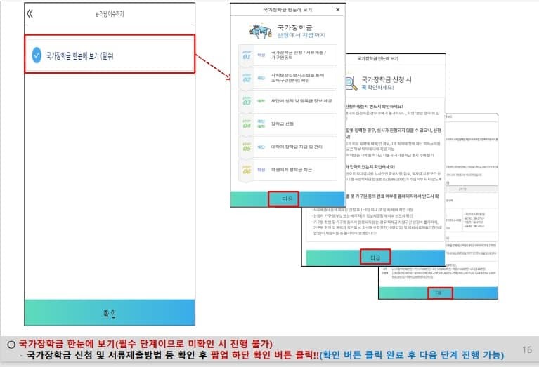 국가장학금 한눈에 보기 필수 단계 이므로 미확인 시 진행 불가입니다.