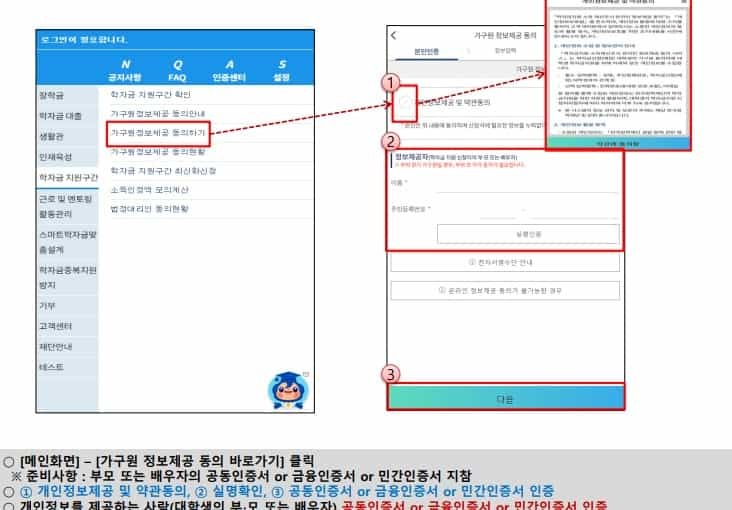 2022 국가장학금 모바일 신청 정보수정 가구원 동의 서유 제출 방법 바로가기