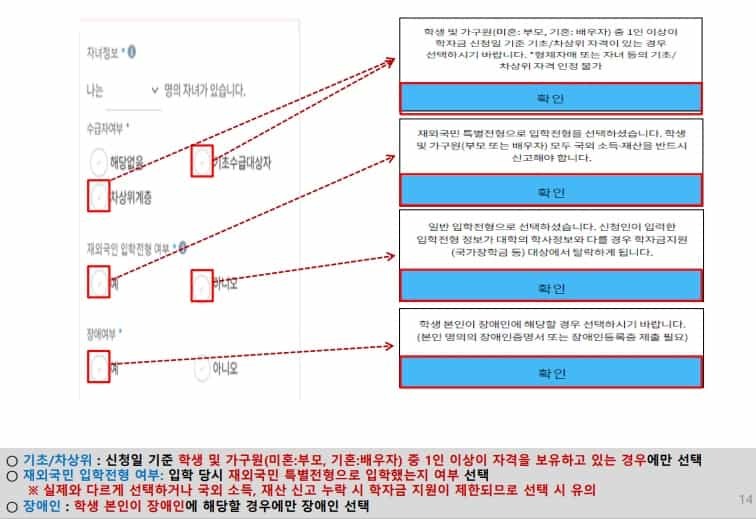 국가장학금 신청하는 학부 신입생의 경우 대학정보 입력여부과 관계없이 대학에서 제공되는 최종 등록정보로 심사 됩니다.