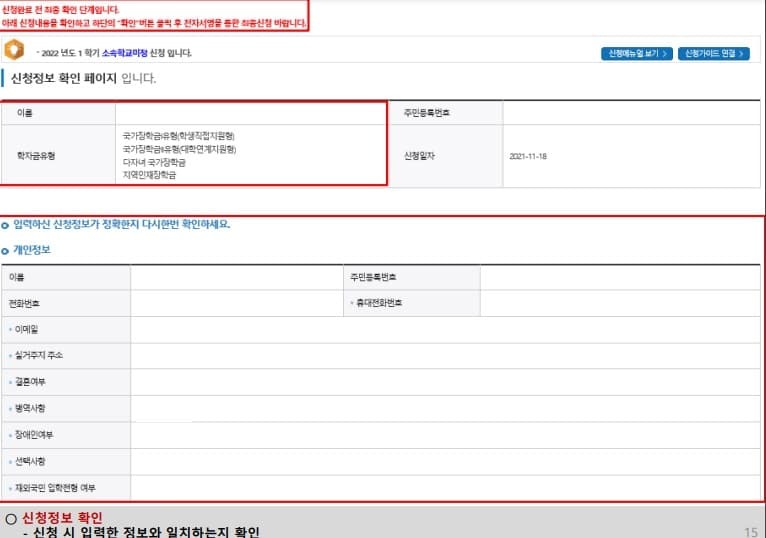 2022 국가 장학금 신청 유의사항
