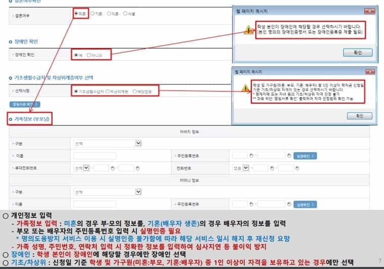 | 학자금 지원구산 경곗값 확인 바로가기 | 가구원 정보 제공 동의 바로가기 |